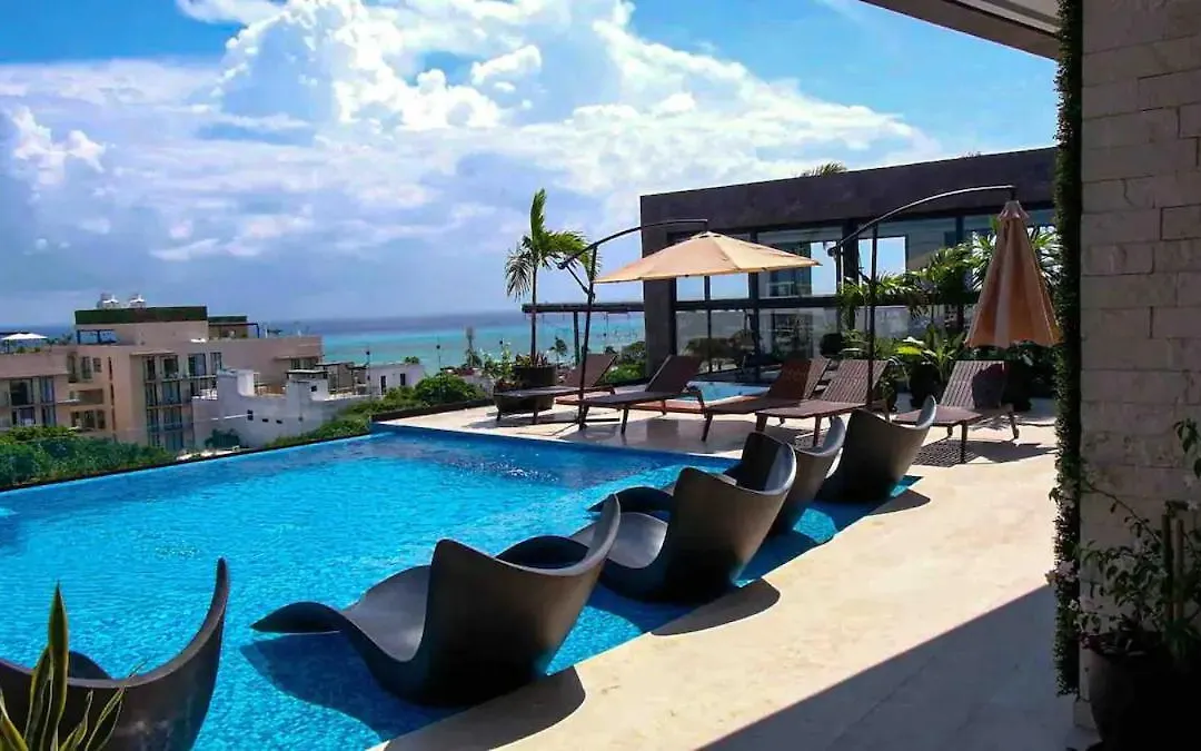Dentro del apartamento Stayon5A Av Penthouse With Privatepool hay una cocina bien equipada donde los huéspedes pueden preparar sus propias comidas caseras. El aeropuerto Nacional de Playa del Carmen está a 5 km en coche. Podrá admirar las vistas al mar desde una terraza o nadar en una piscina desbordante.